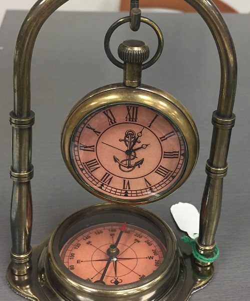 Brass vintage hanging clock with compass
